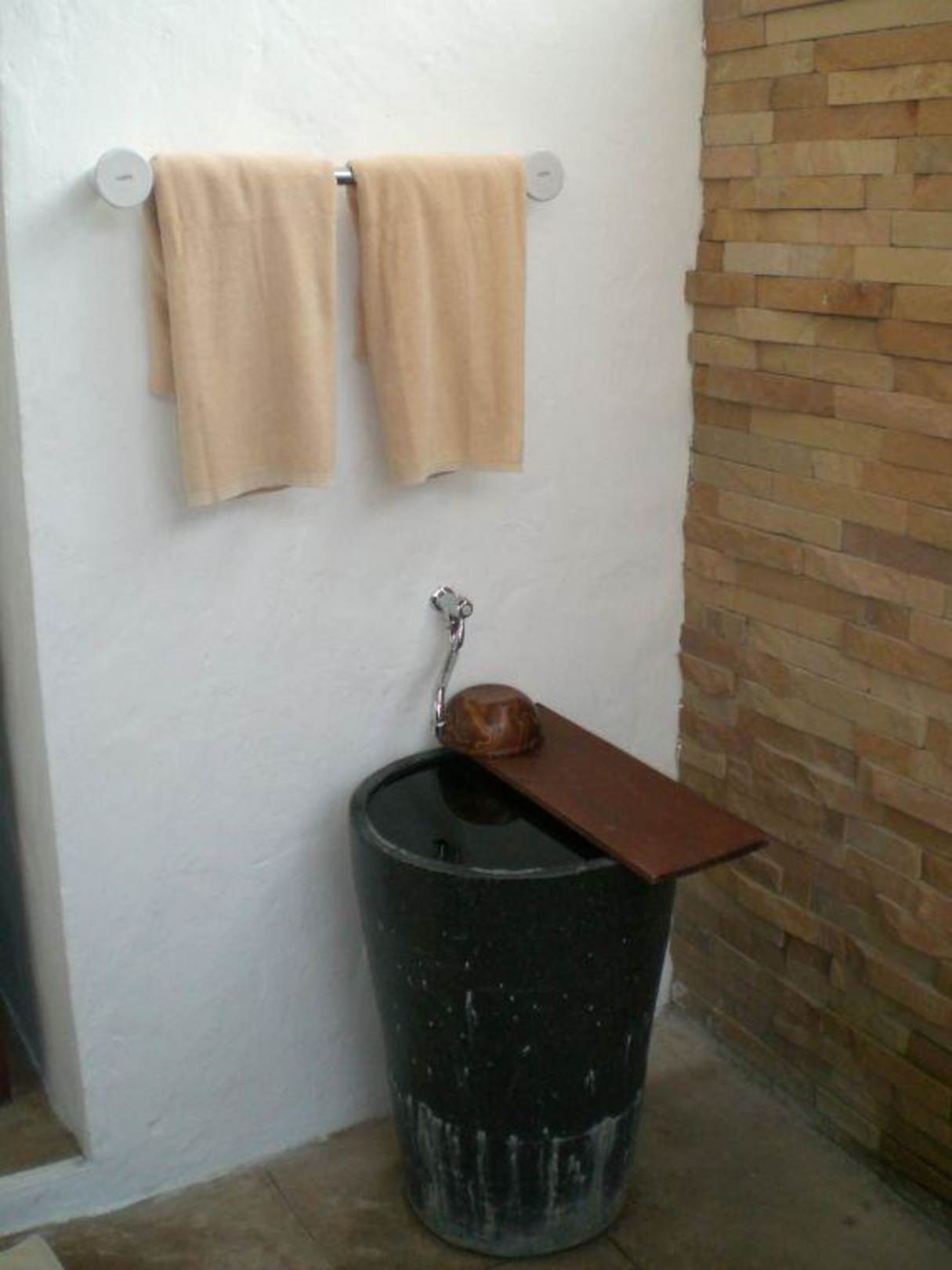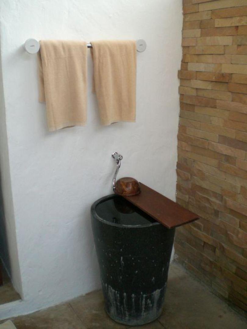 Duschraum des Bungalows mit Wasserkrug