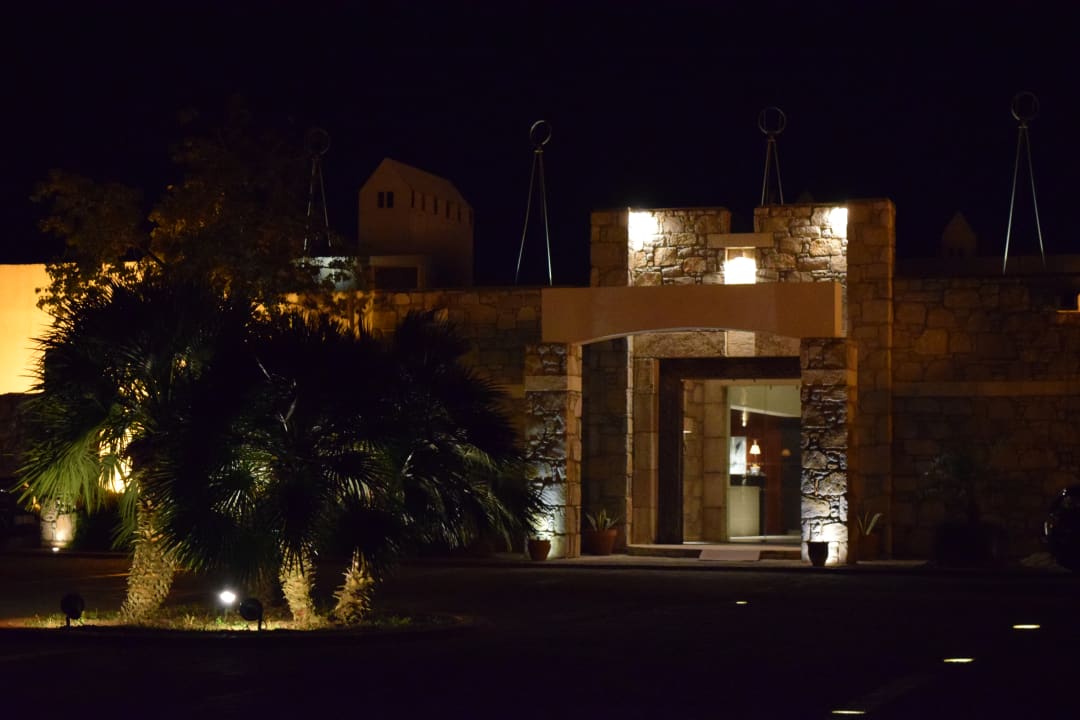 Eingang des Hotels bei Nacht