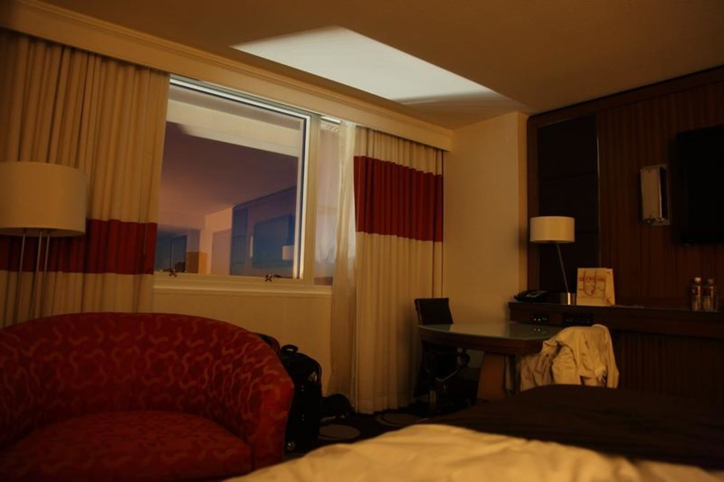 Zimmer Blick zum FensterHier ein Bild vom bett aus, seitwärts zum Fenster. Die Betten im Mirage sind übrigens genial, man schläft wie auf Wolke 7.