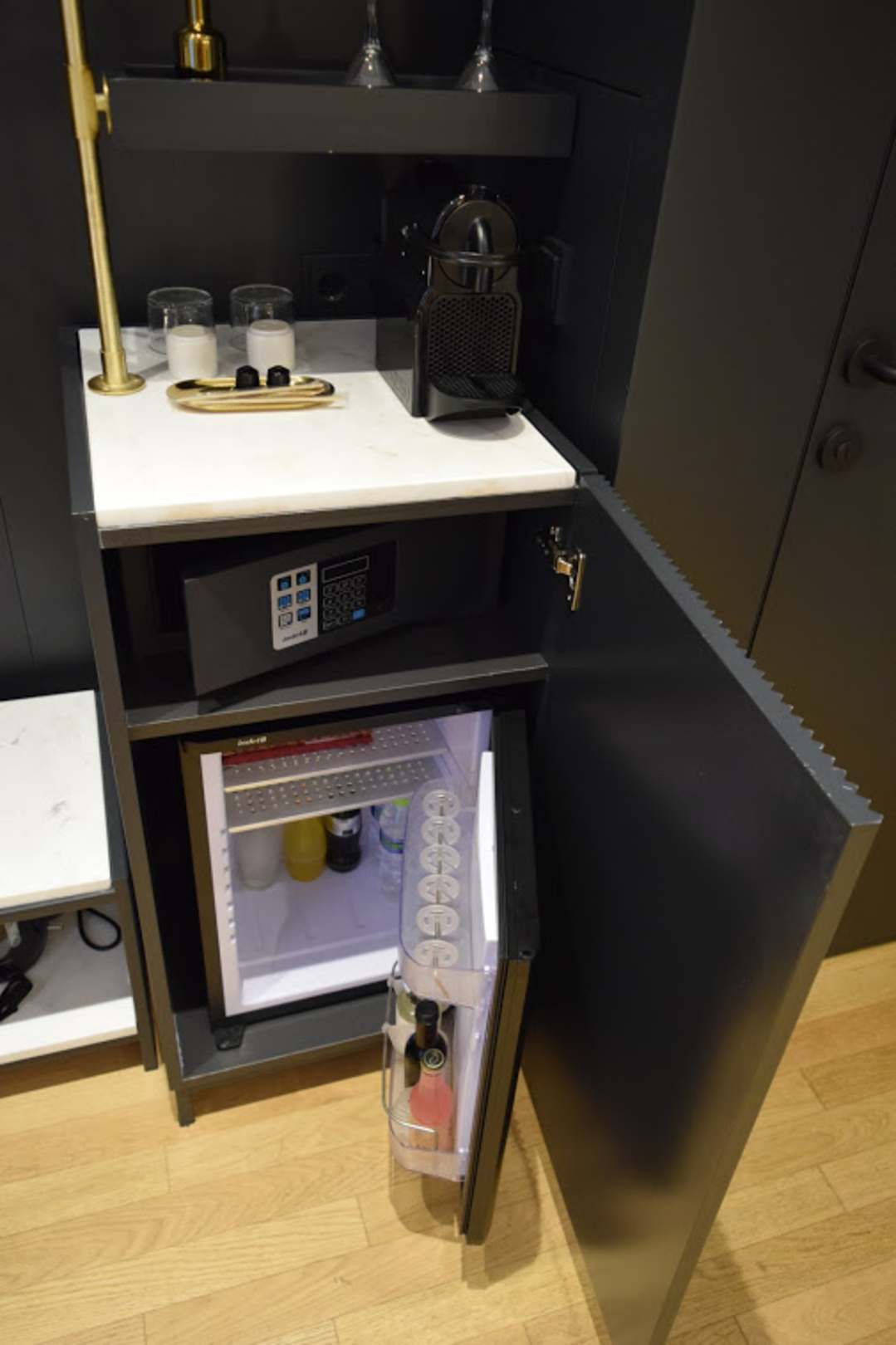 Safe und Kühlschrank im Zimmer