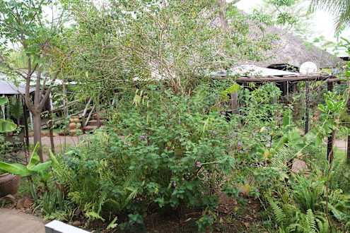 Garten mit Blick Richtung Restaurant