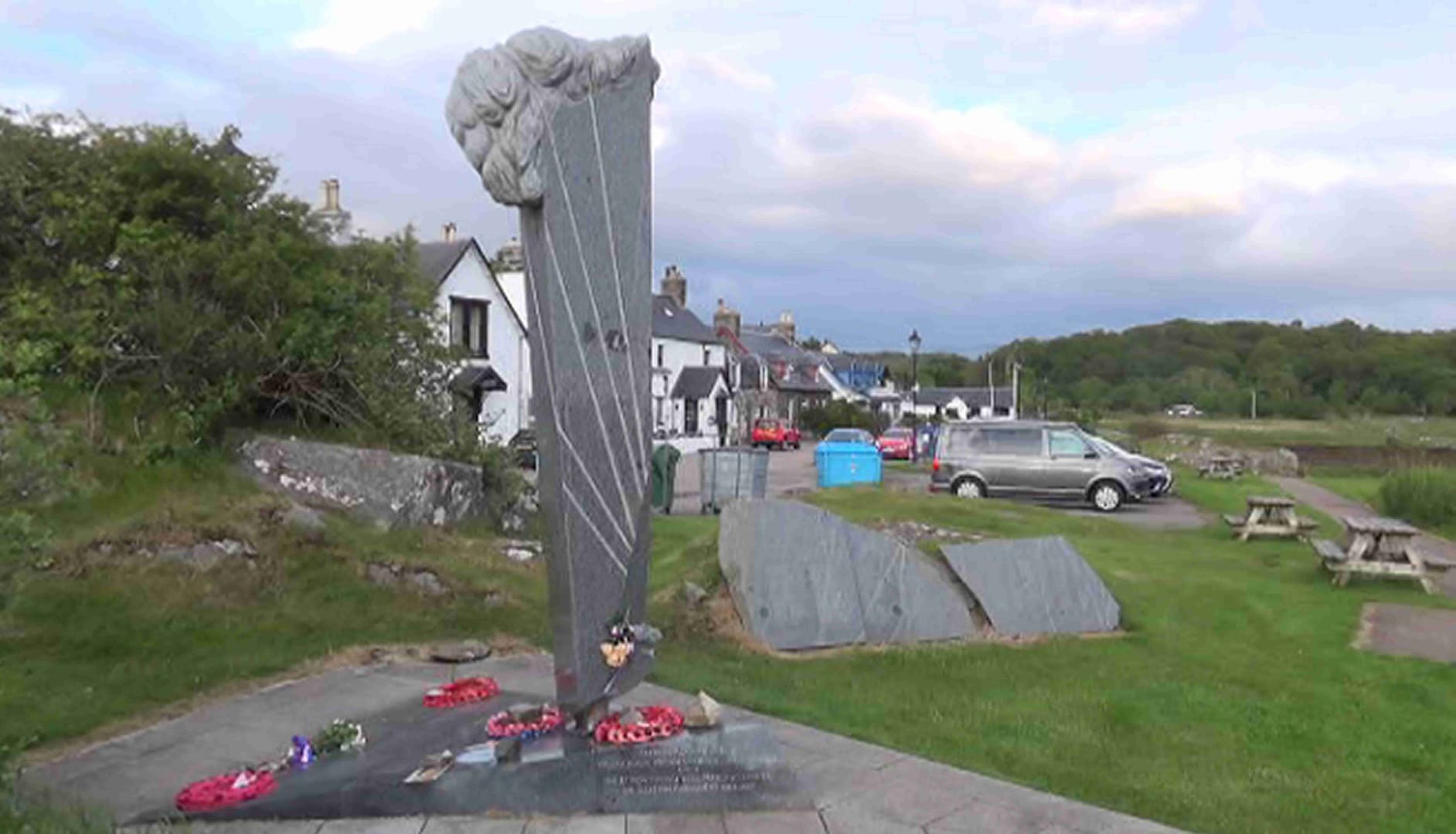 Fallschirm-Monument,im Hintergrund der Gasthof,Konsum ,Post.