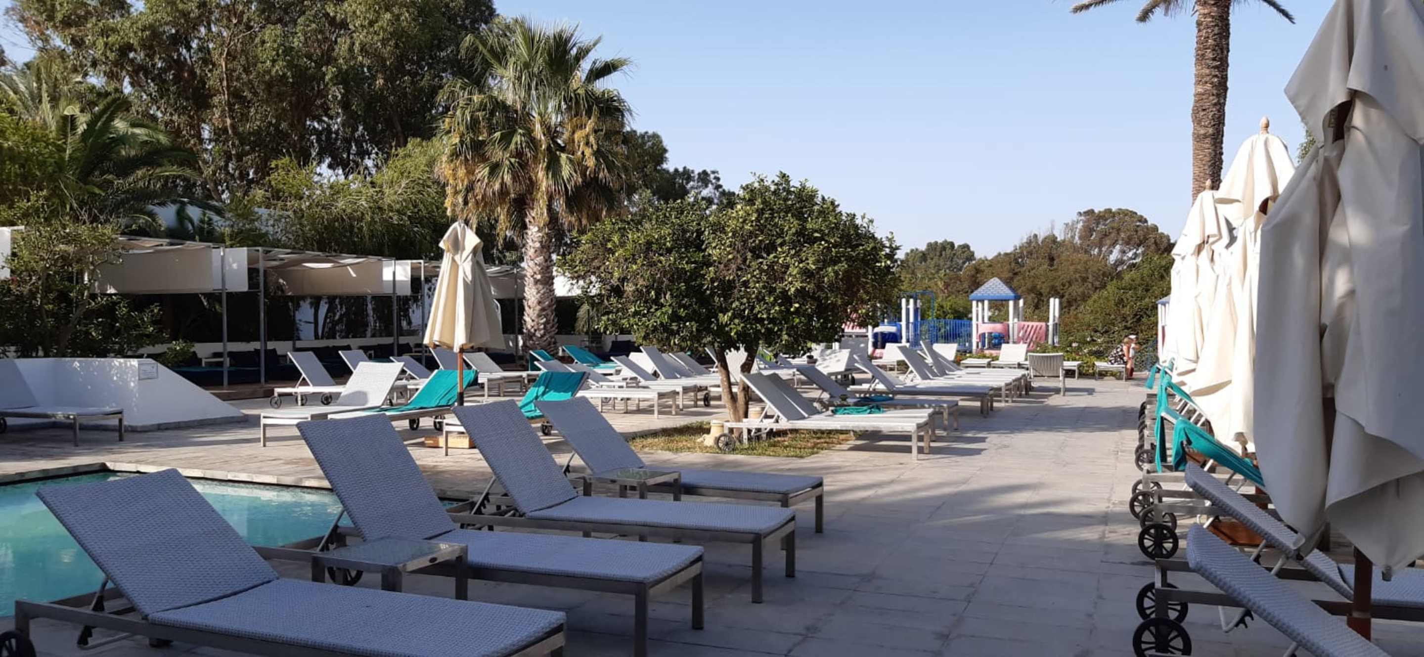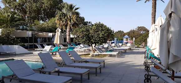 Viele Liegen am Pool