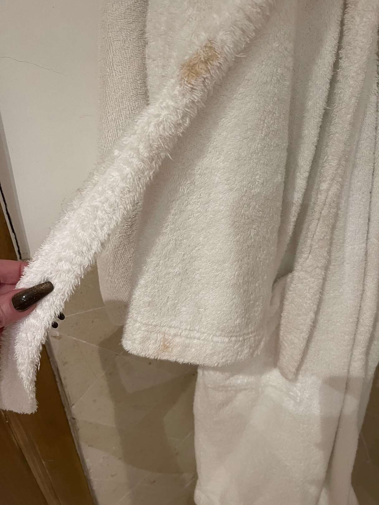 Dreckige Bademäntel erhalten und wurden erst als sie gewechselt als sie auf dem Boden lagen.