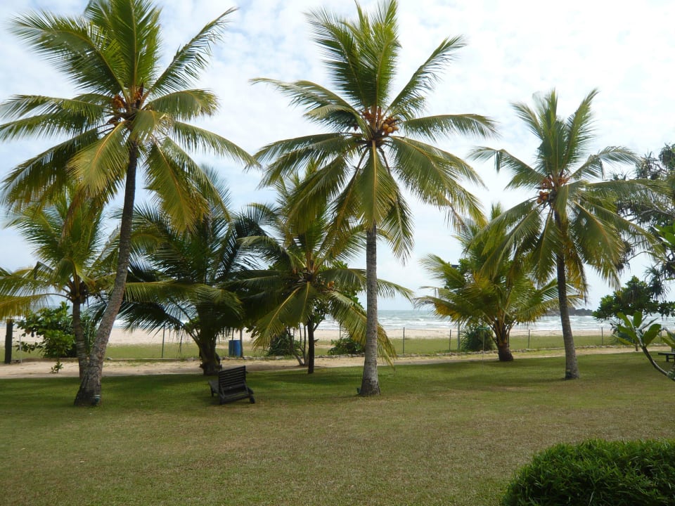 Blick vom Garten aufs Meer