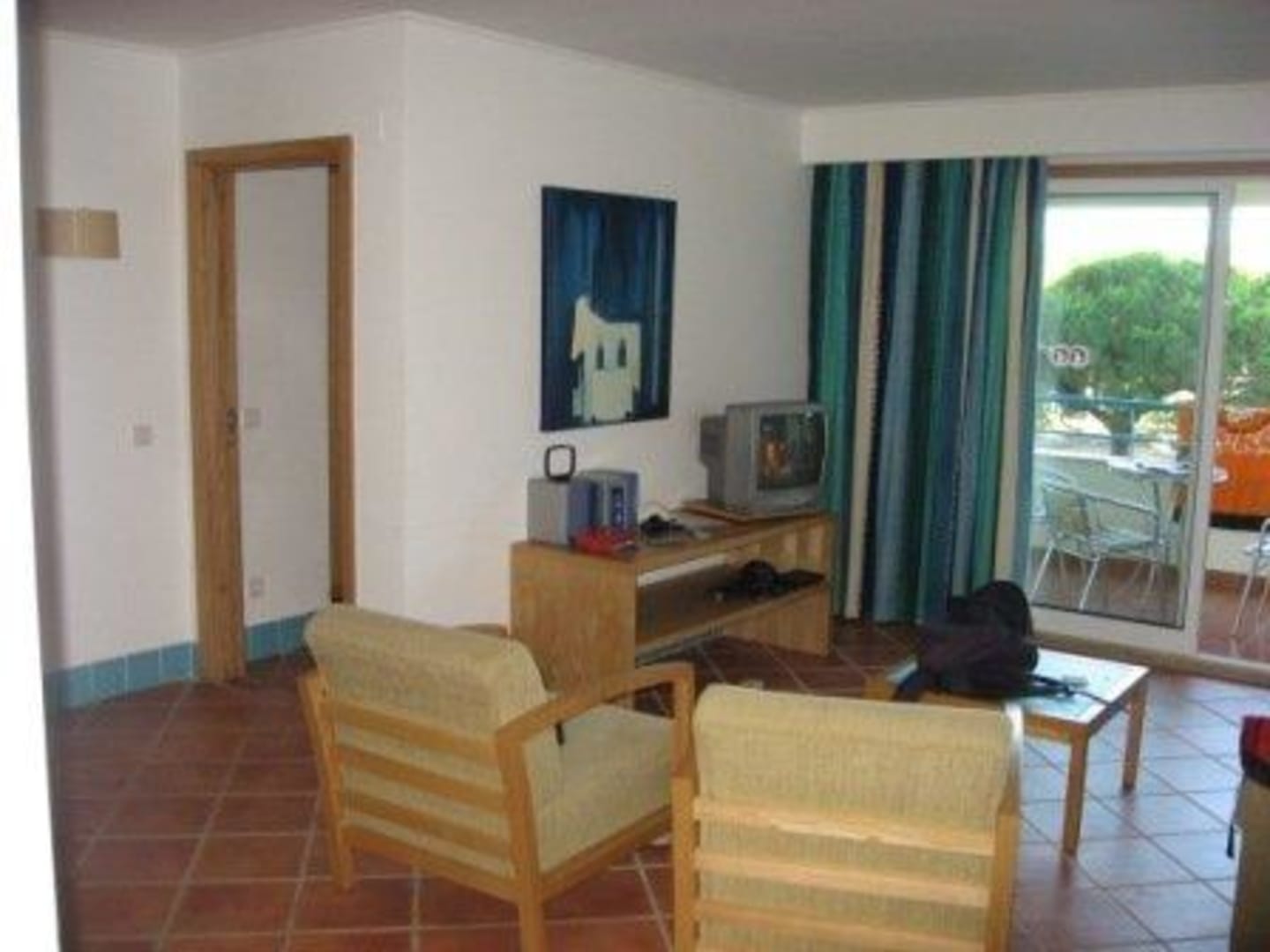 WohnraumLinks der Eingang zum Schlafzimmer, rechts der Balkon