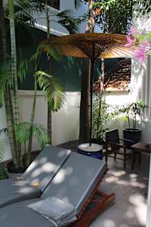 Aussenbereich eines Zimmers mit Pool