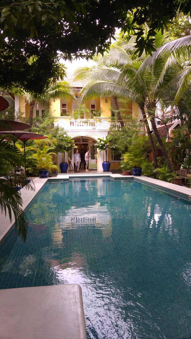 Vorderer Pool, links davon das Restaurant und im Hintergrund das Hauptgebäude