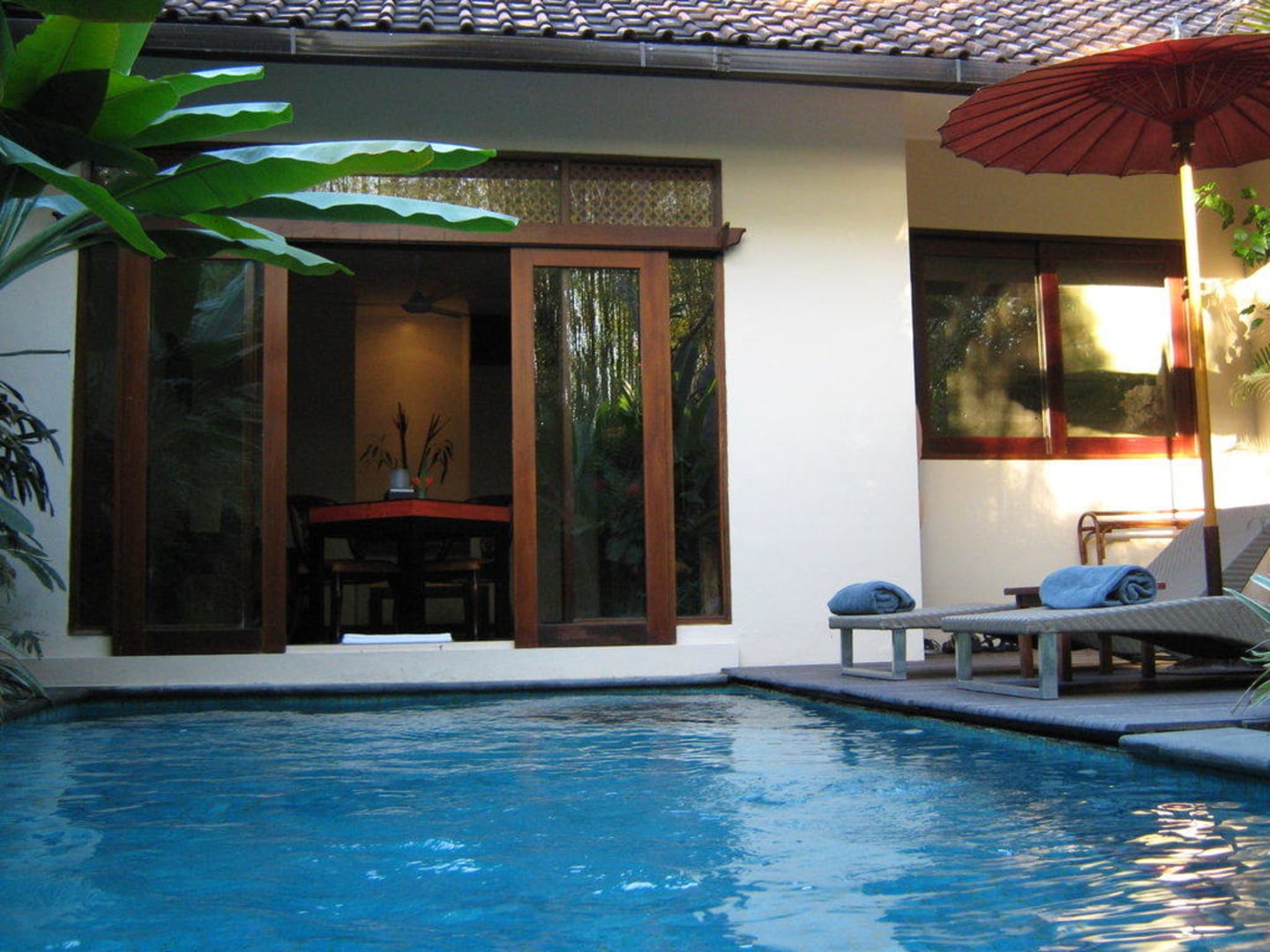 Blick vom eigenen Pool in die Villa