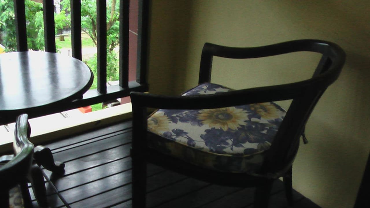 Kleiner Balkon Zu dem Doppelzimmer ist auch ein kleiner Balkon dabei . Nur 2 Plstikstühle + Tisch hat da Platz . Größe ca. 2,5 m2 .