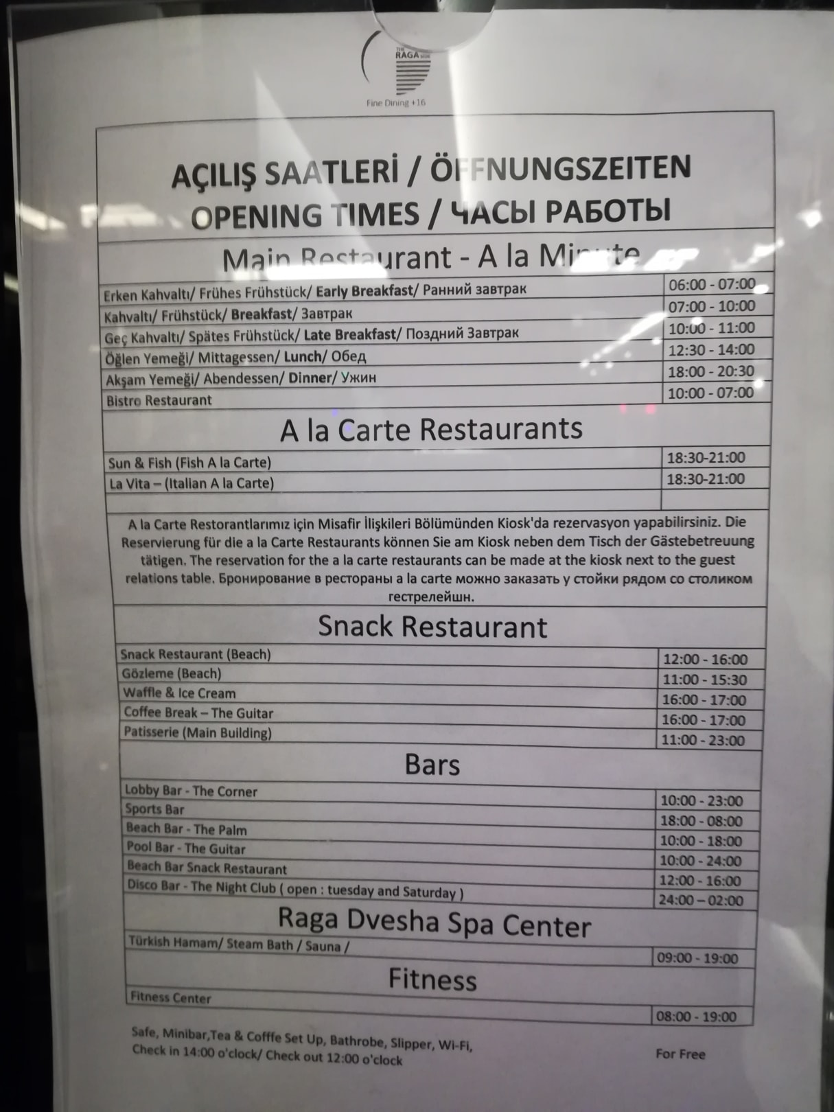 Die Öffnungszeiten der Restaurants+Bars