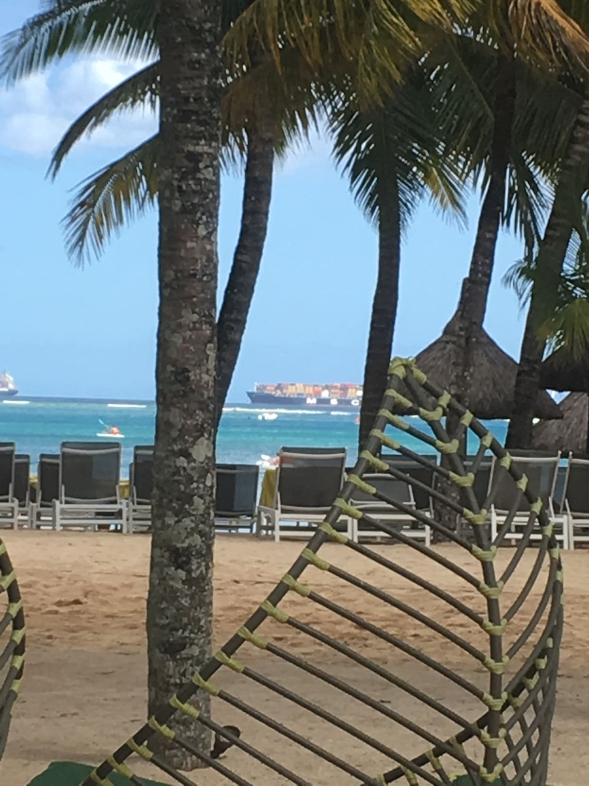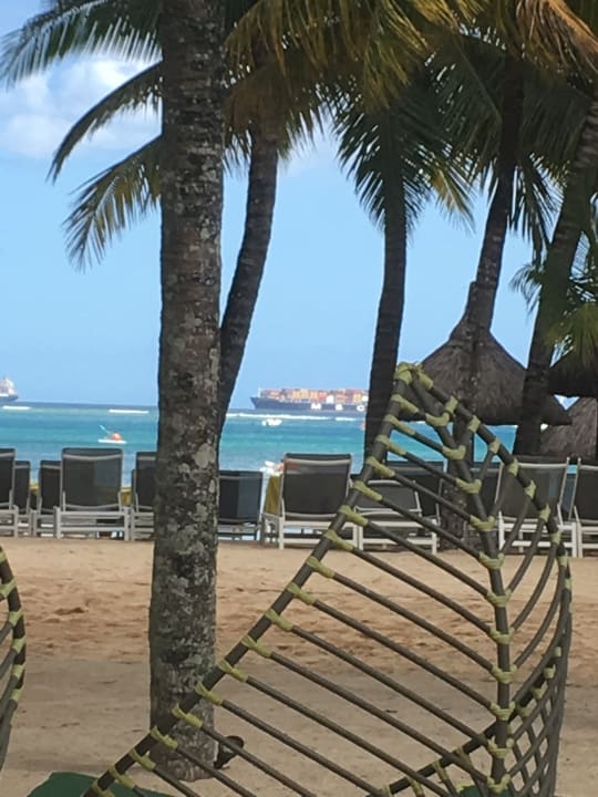 StrandTäglich könnte man Frachtschiff vor der Bucht liegen sehen.