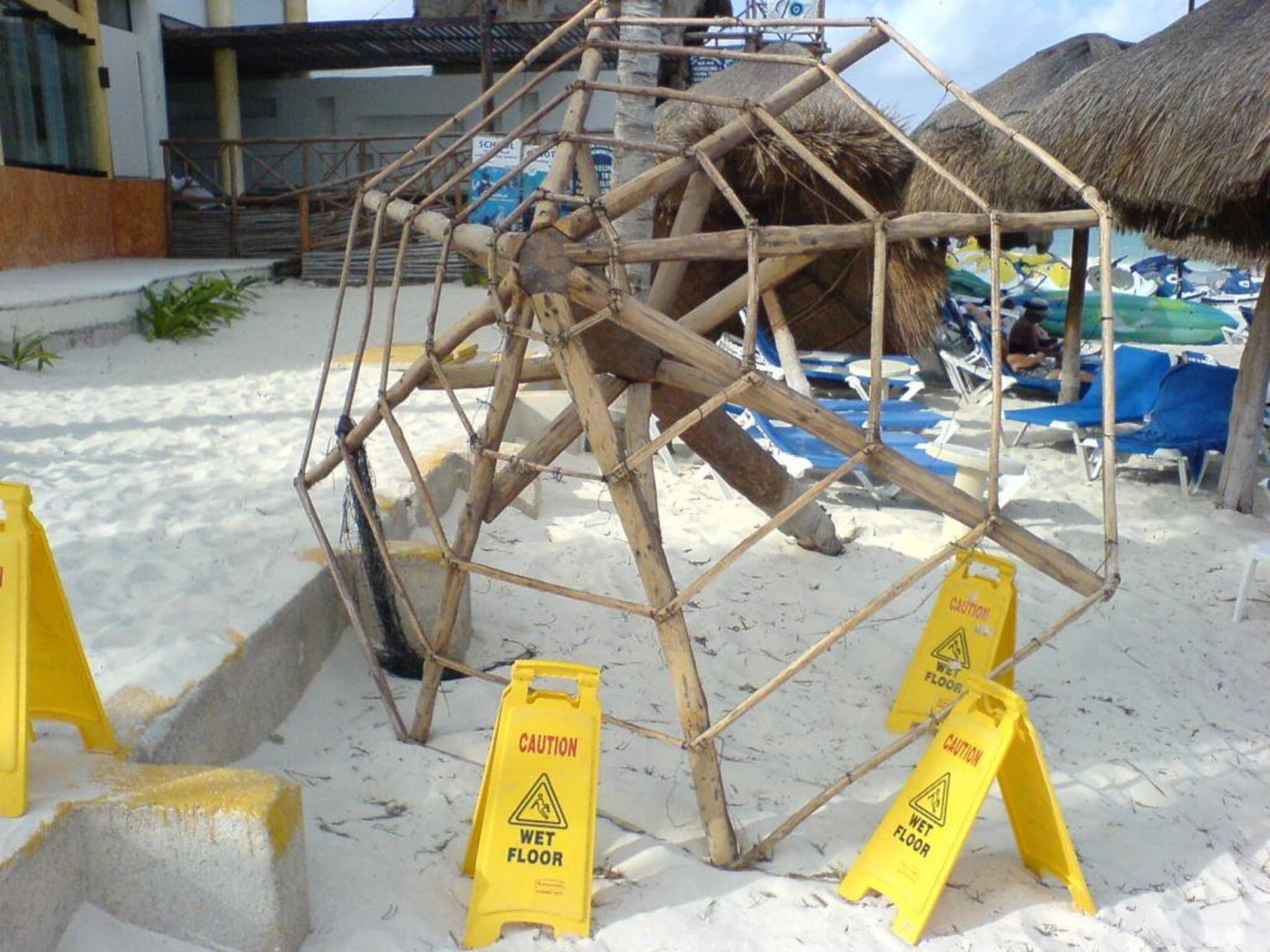 Umgefallener Schirm am Strand