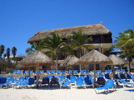 Blick auf das Hotel vom Strand aus