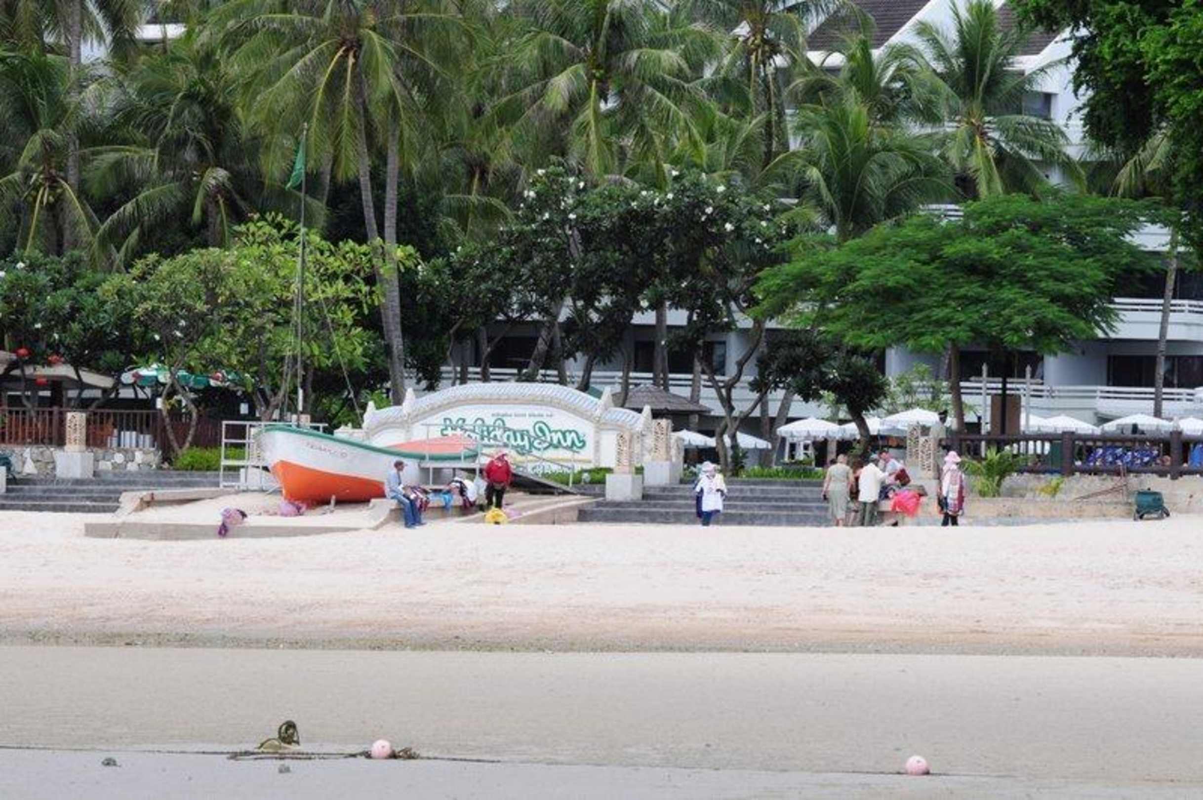 Blick vom Strand auf die AnlageBis zur Treppen dürfen die Verkäufer ihre Waren anbieten, weiter auf die Anlage dürfen sie nicht.
