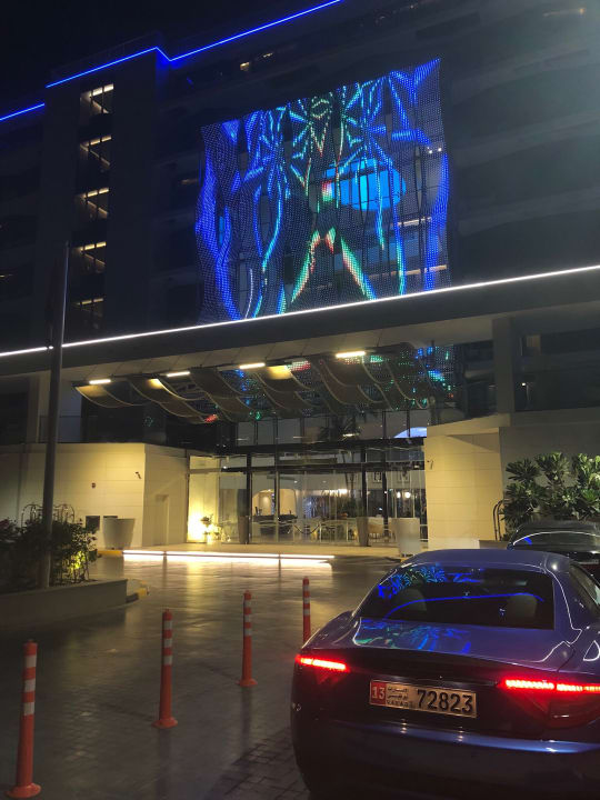 Hotel von außen, abends