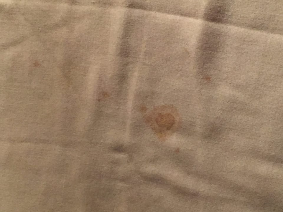 ZimmerFlecken waren überall auf den Bettbezügen sowie auf Handtüchern! Wir schliefen auf unseren Handtüchern und Klamotte