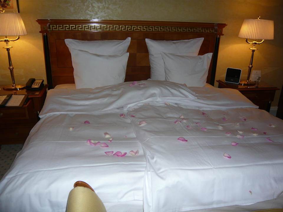 mit Rosenblätter am Bett