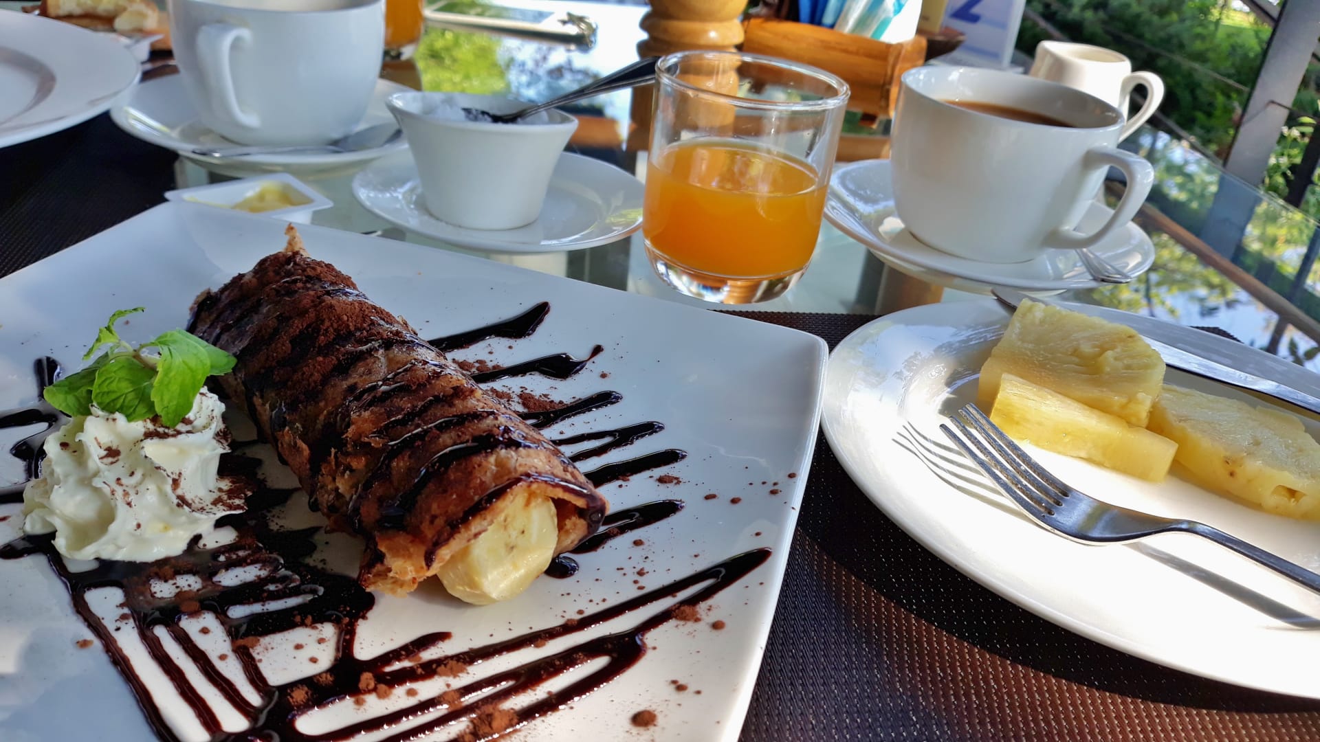 Frühstück - hier Bananenpancake mit Schokosauce