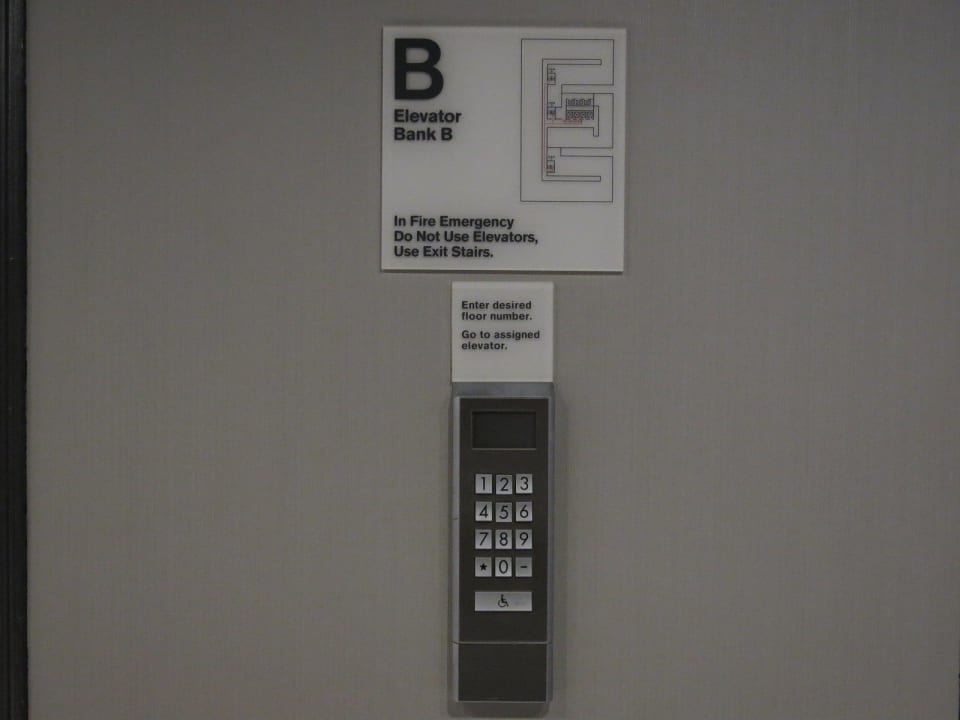 Um einen Fahrstuhl zu holen musste man die Etage, in die man wollte, auf einer Tastatur vor den Fahrstühlen entippen. Daraufhin bekam man angezeigt, vor welchem Fahrstuhl man sich hinstellen und warten musste.