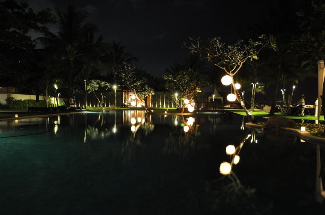 Poolanlage nahe Hotel-Strand bei Nacht