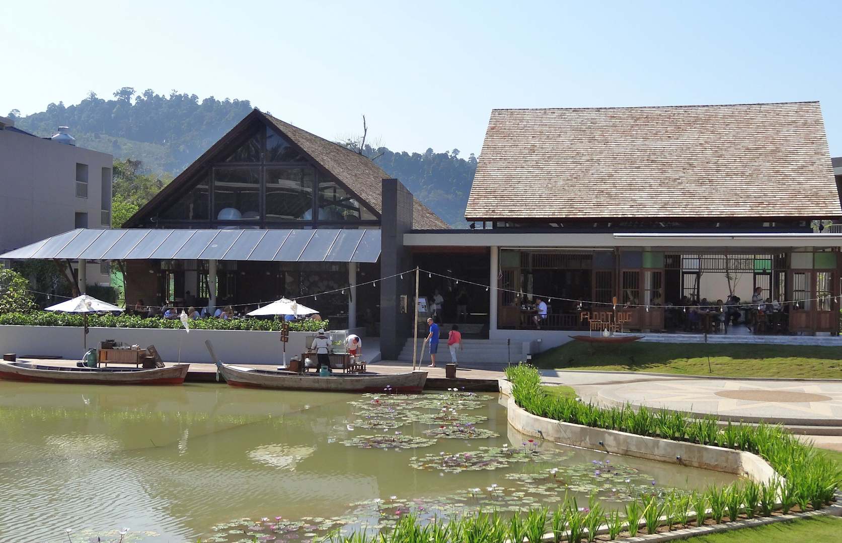 Blick gegen Hauptrestaurant an der Lagune