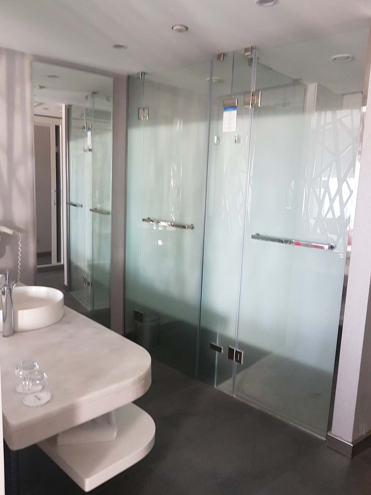 Toilette links, Dusche rechts. Beides nicht ganz blickdicht