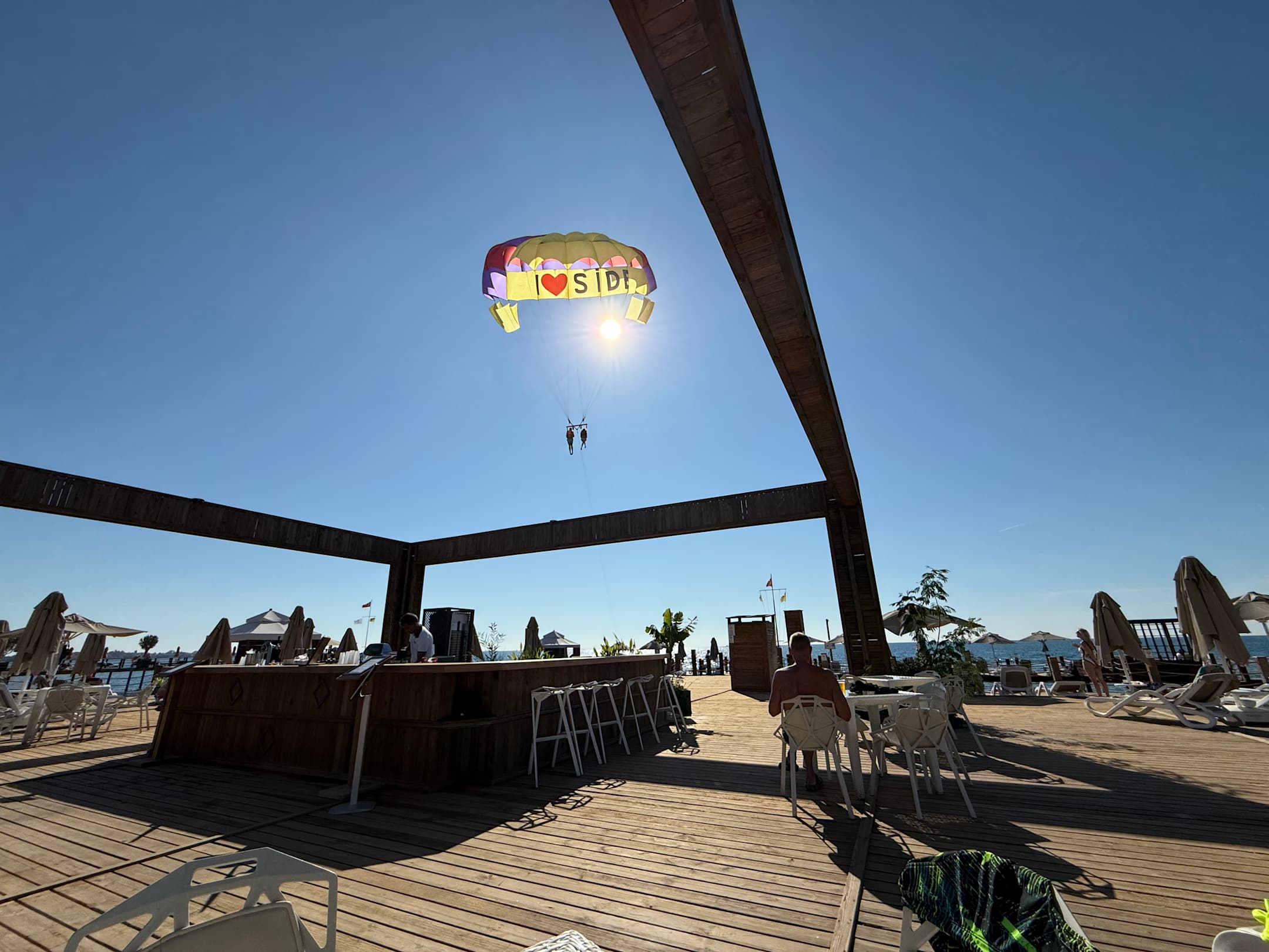 Die Pier-Bar. Dort gibt es nur kalte Getränke (Bier, Wein und wenige Cocktails) in dünnen Plastikbechern. Etwas festere und wiederverwendbare Becher wären professioneller und ökologischer. Der ganze Plastikmüll ist ohnehin schon groß genug.