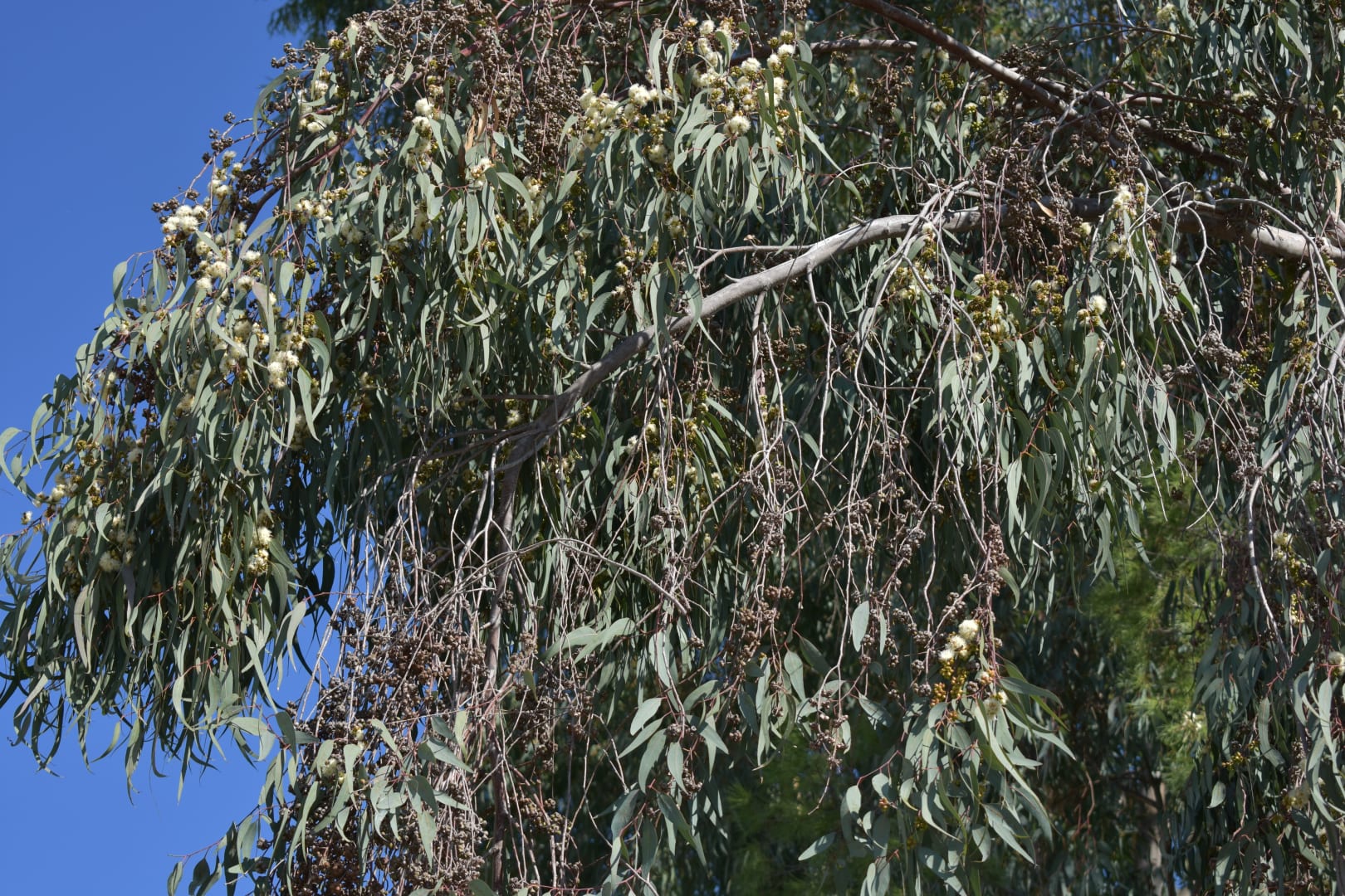 Auf dem Weg vom Hotel zum Strand Eukalyptus-Baum mit Blüte