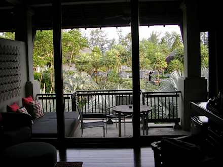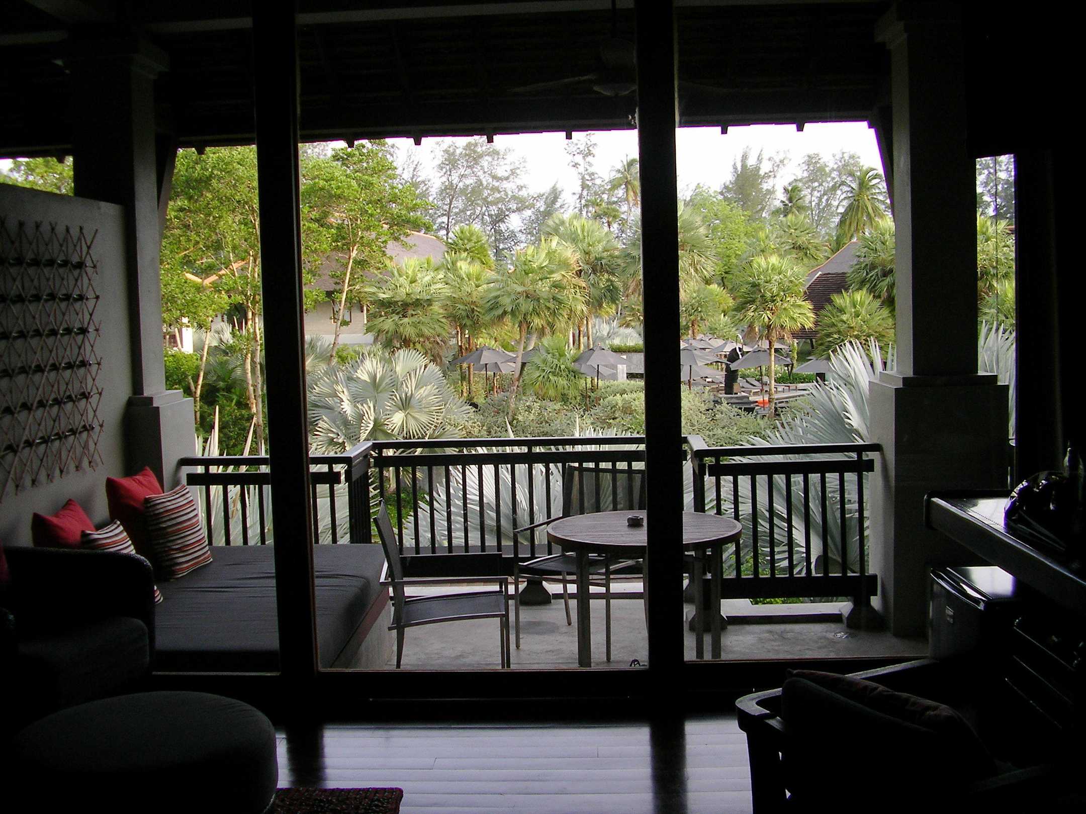 Blick vom Zimmer auf den Balkon
