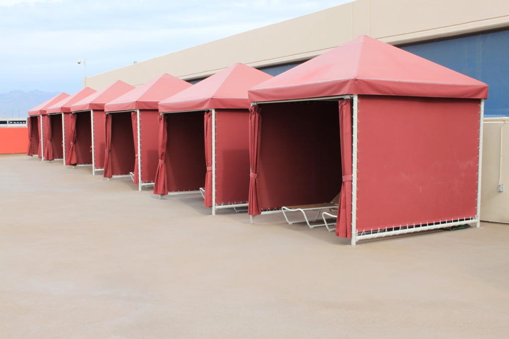 Pool im achten Stockwerk, Ruhezelte