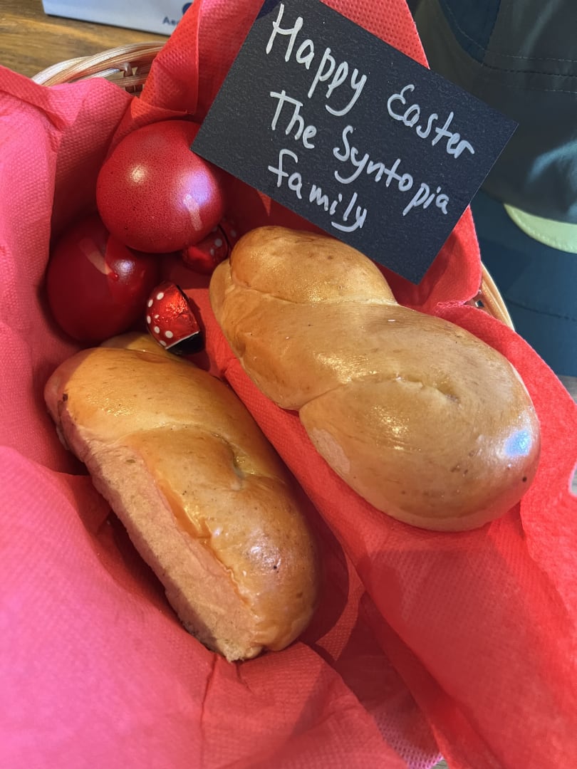 SonstigesWir waren zum griechischen Osterfest im Syntopia. Diesen Korb hat jedes Zimmer bekommen :-)