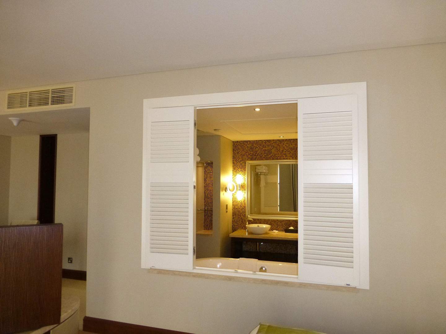 Blick vom Schlafzimmer ins Bad