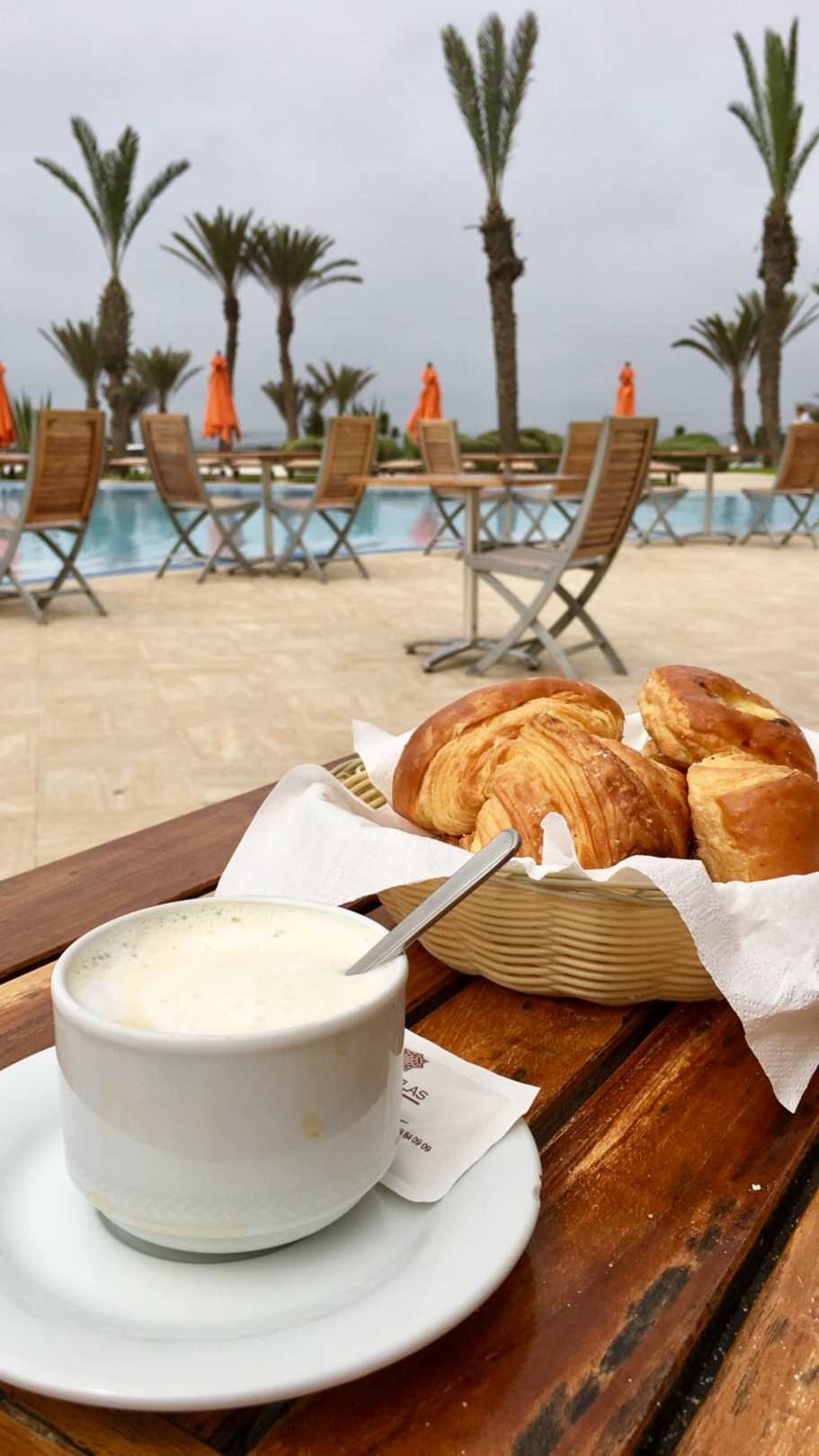 Hier haben wir das späte Frühstück am Pool genossen. Das allgemeine Frühstück gab es nur bis 10 Uhr, danach hatte man die Möglichkeit an der Poolbar einen Korb mit Crossaints und ähnlichem zu bekommen