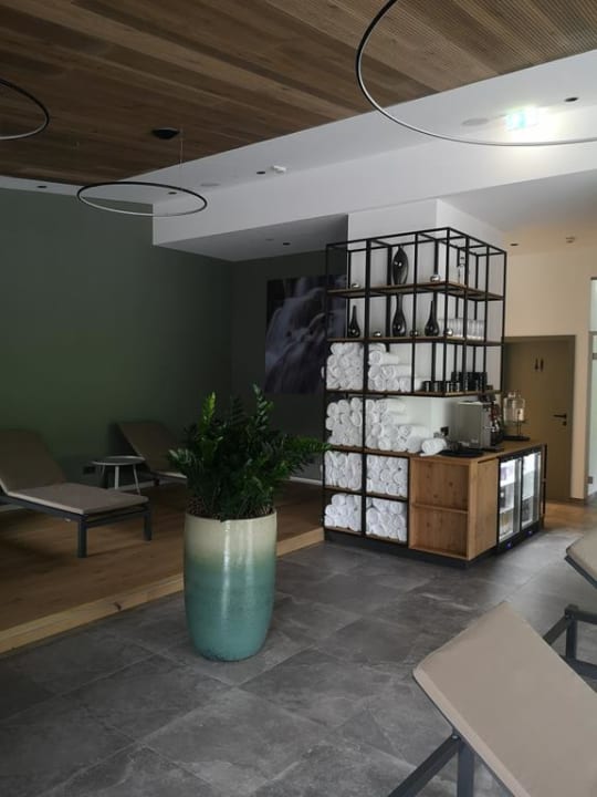 Teeecke und Handtücher im Rooftop-Spa.