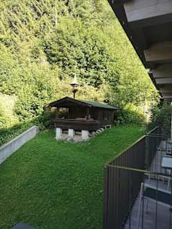 Zi. 307, Blick vom Balkon zum Berg.