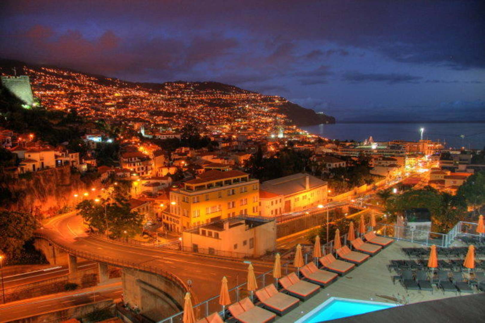 Blick vom Balkon auf Funchal am Abend