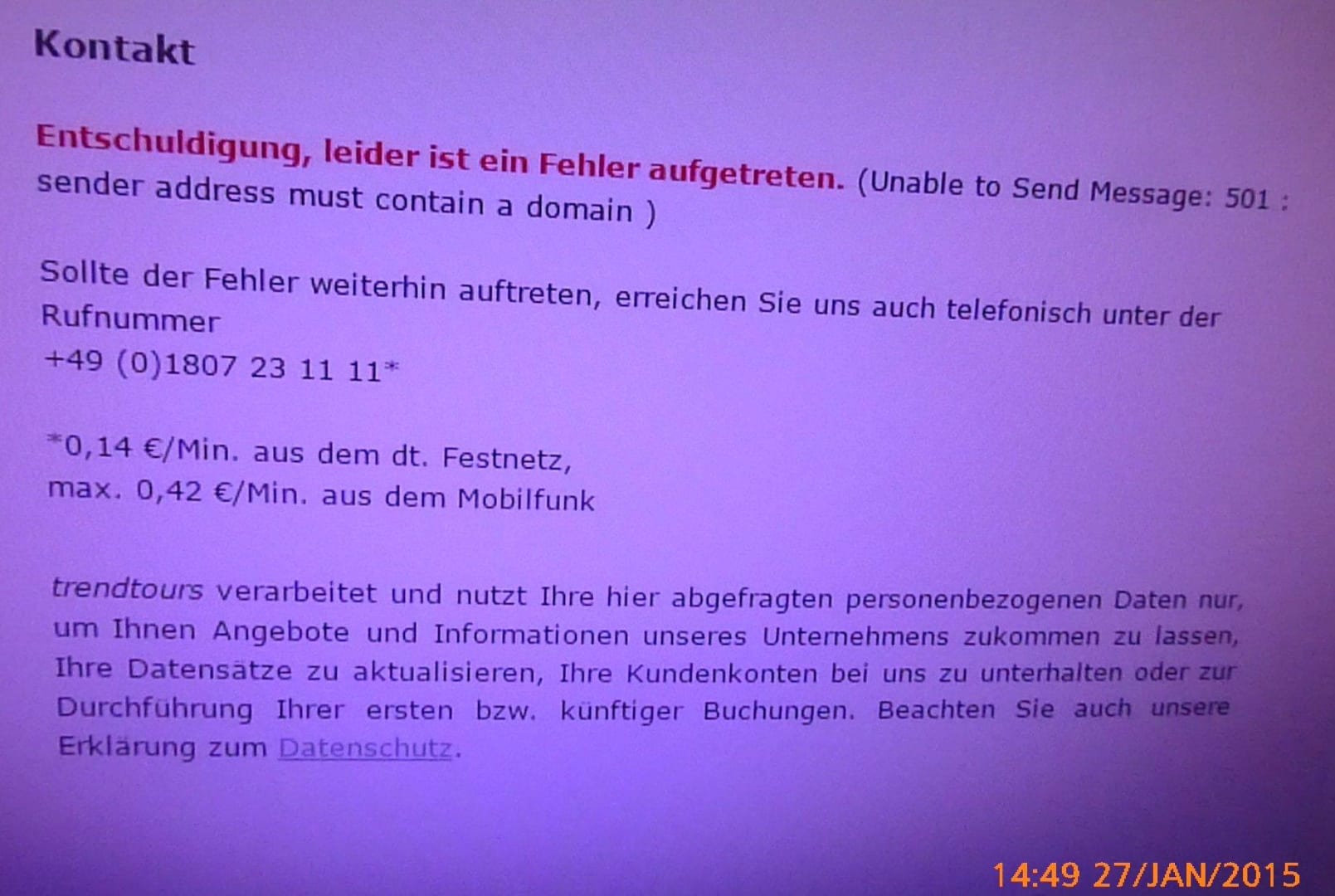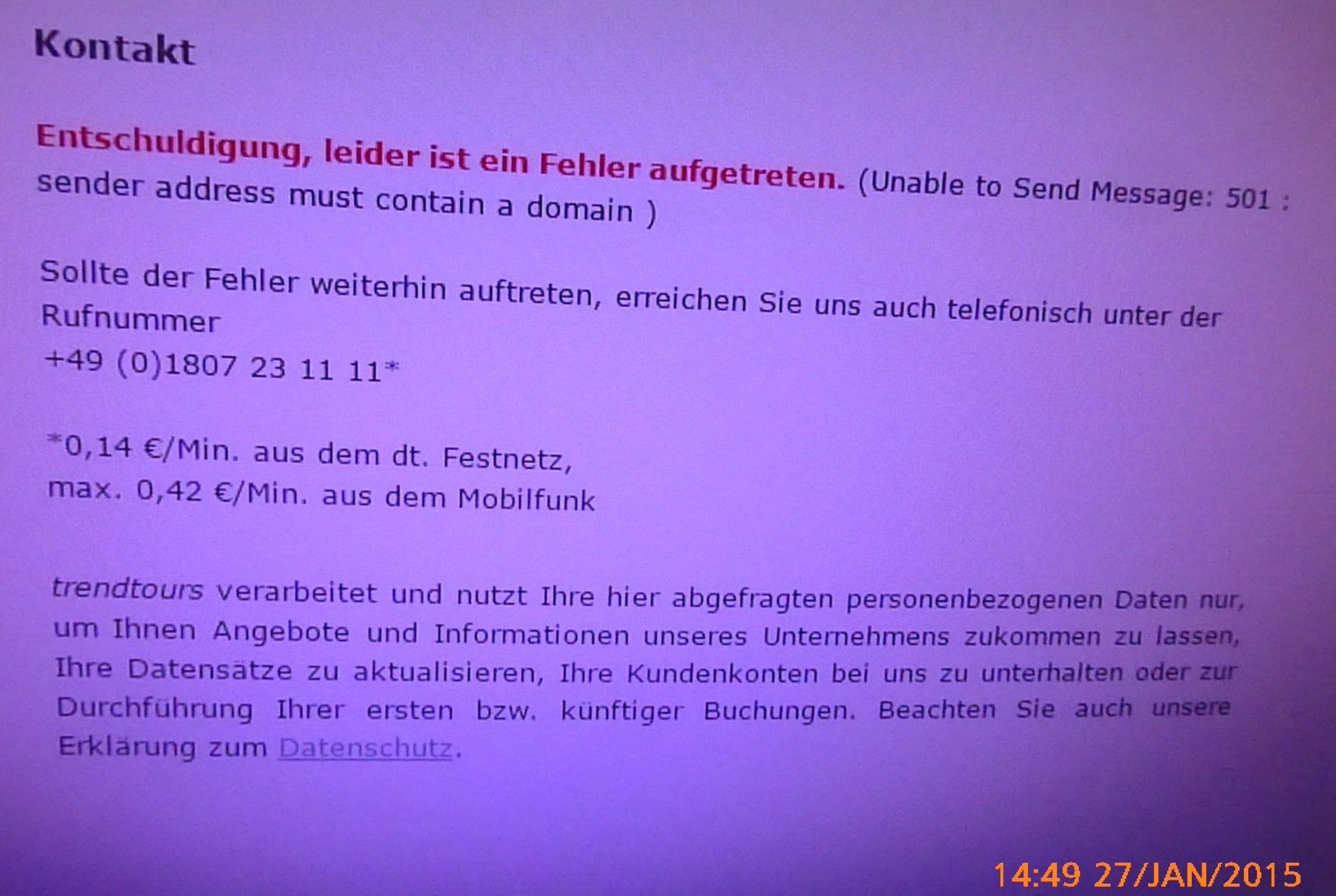 Kontakt zum Reiseveranstalter unterbunden