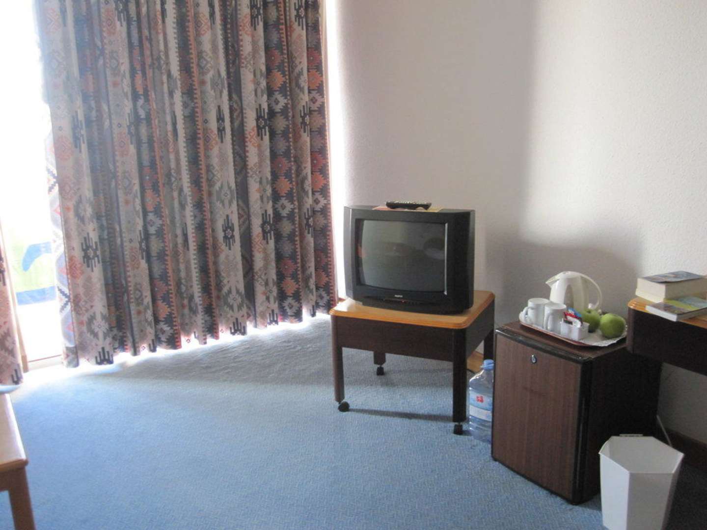Der Fernsehen stand gegenüber des Bettes und der Sitzecke. Es waren einige deutsche Sender zu empfangen. Wurde von uns nur ganz selten in Anspruch genommen.