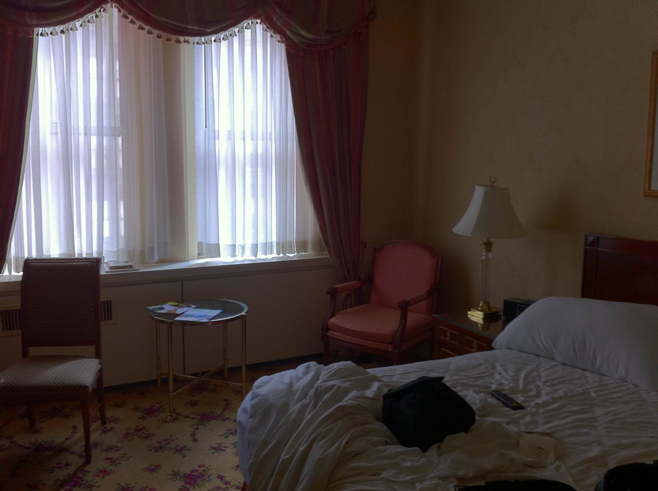 Klein, dunkel, dreckige Fenster; schwere Vorhänge