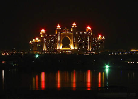 Ausblickherrlicher Ausblick auf das toll beleuchtete Atlantis vom Balkon des Westin aufgenommen, Entfernung deutlich über 2 km;