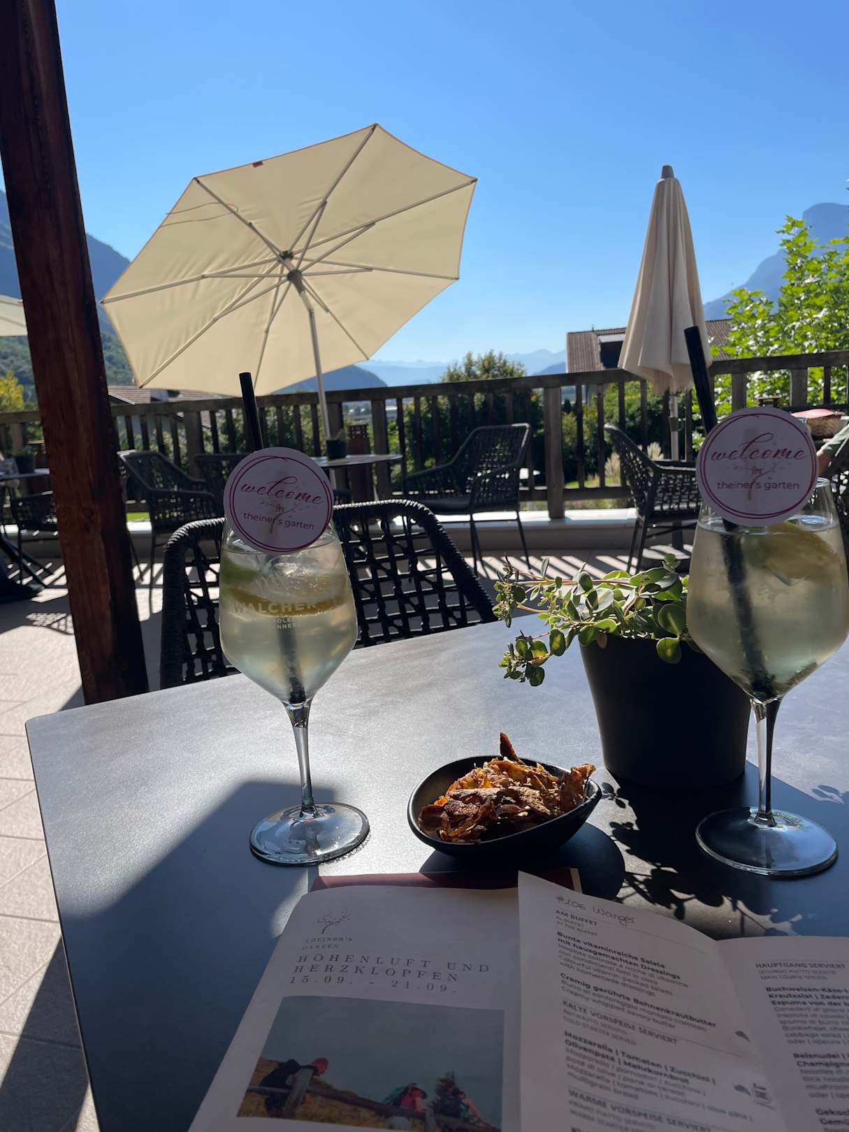 Leckerer Welcome-Drink und hausgemachte Kartoffelchips