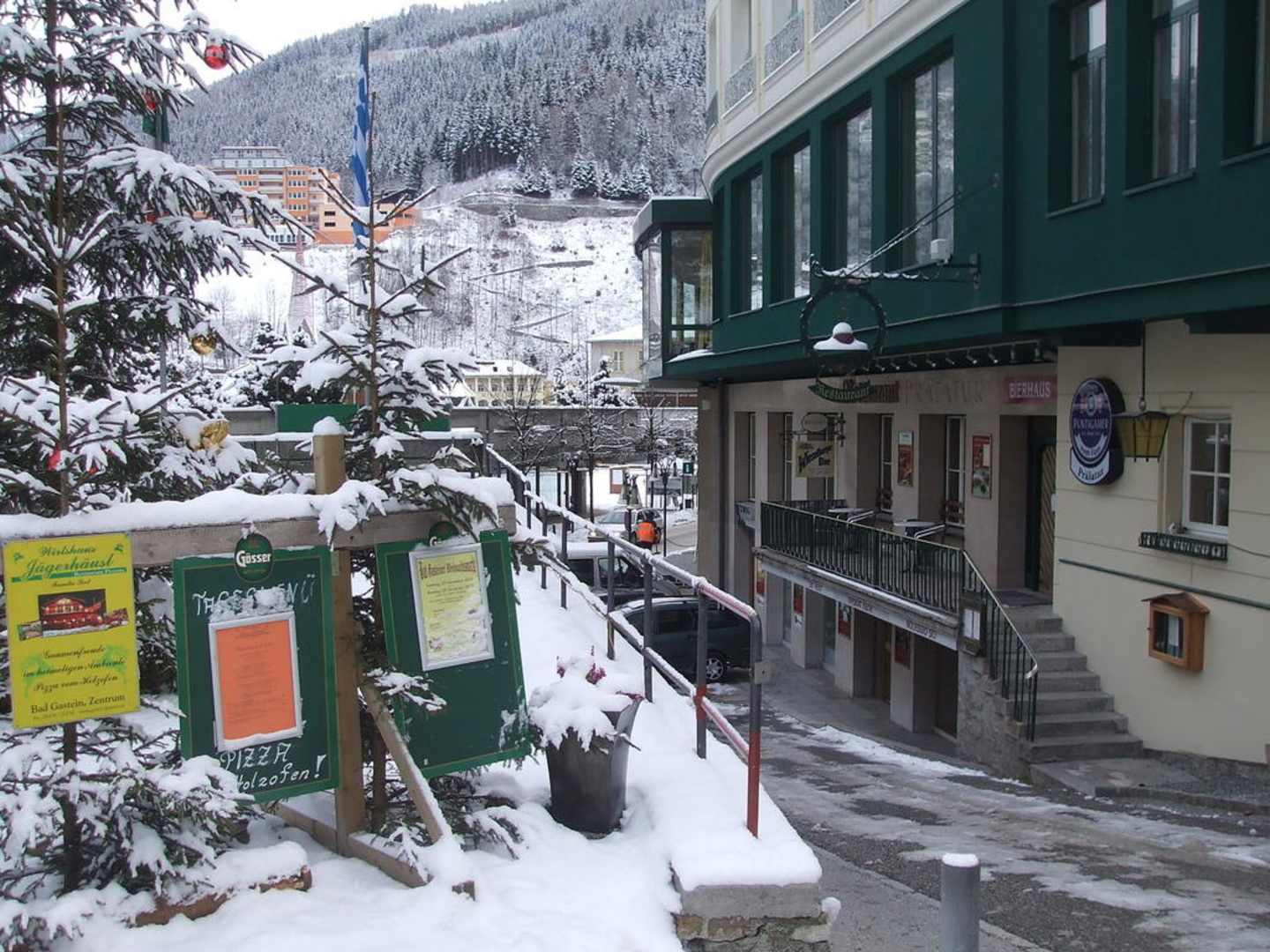 Außenansicht eines Teils vom Hotel ElisabethparkDiesen Ausschnitt eines Teils der Vorderfront vom Hotel Elisabethpark mit dem Restaurant Prälatur in einem der Untergeschosse sowie des gegenüberliegenden Merangartens habe ich Ende November/Anfang Dezember 2010 fotografiert.