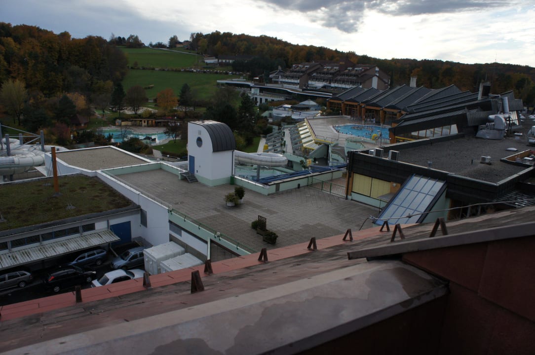 Vom Dachbalkon Blick über Therme