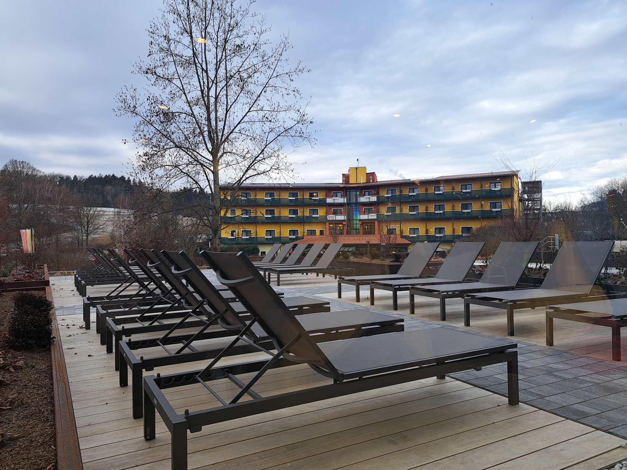 Blick von der Therme aufs Hotel