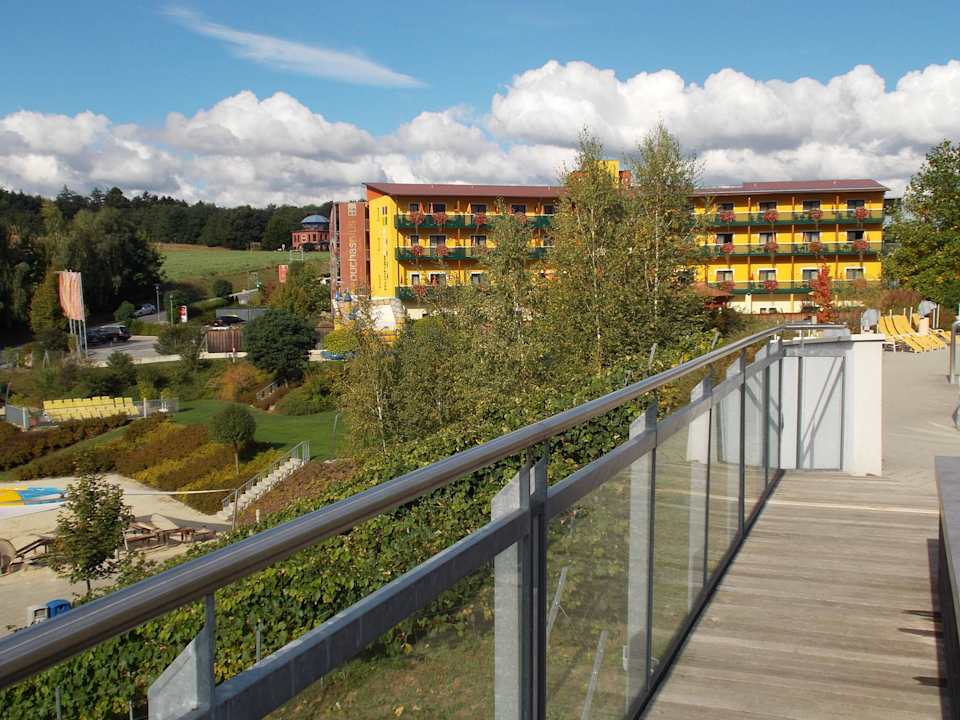 Blick von der Sauna zum Hotel