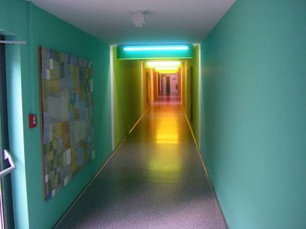 Sehr ansprechender Verbindungsgang vom Hotel zur Therme durch diese sehr angenehmen Farben.
