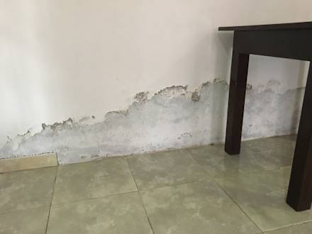 Nasse Wände an denen der Pütz abbröckelt