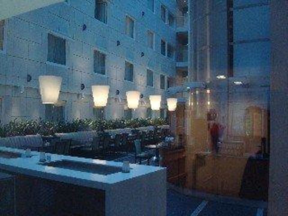 Ausblick aus unserem Zimmer ins Restaurant