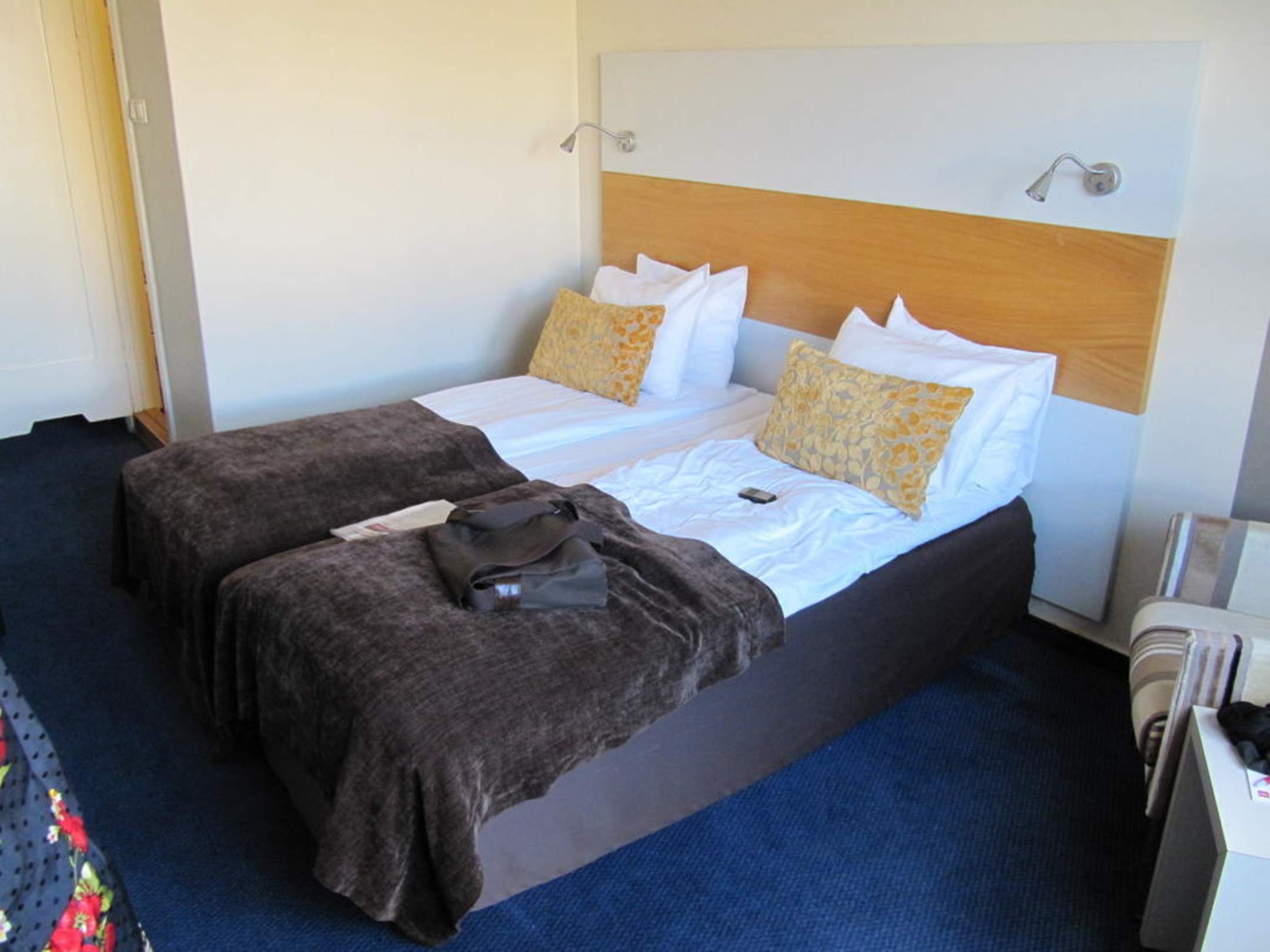 Bett2 sehr leichte Einzelbetten zusammengeschoben, in der Mitte sollte man nicht liegen, da diese dann auseinander rutschen